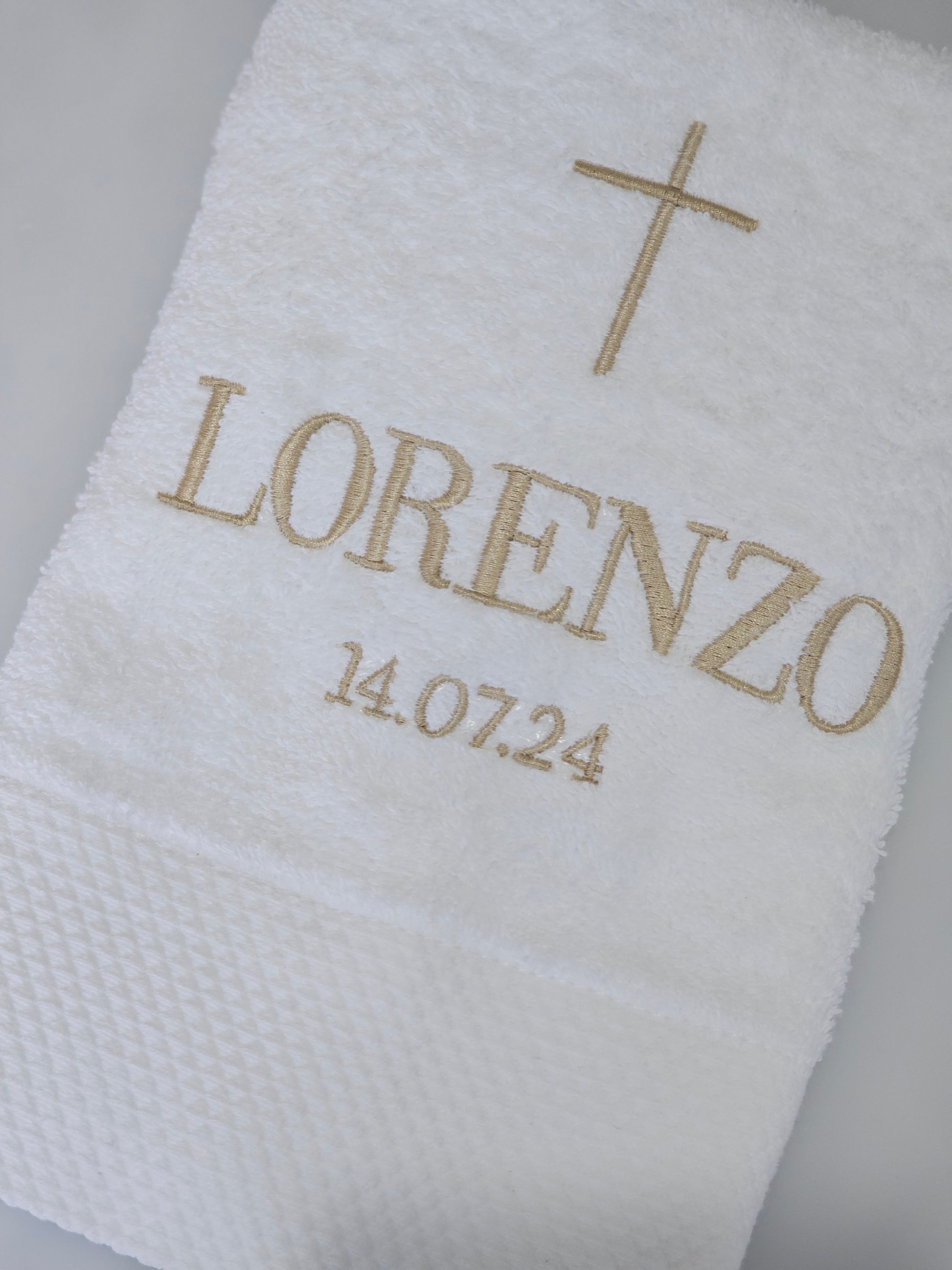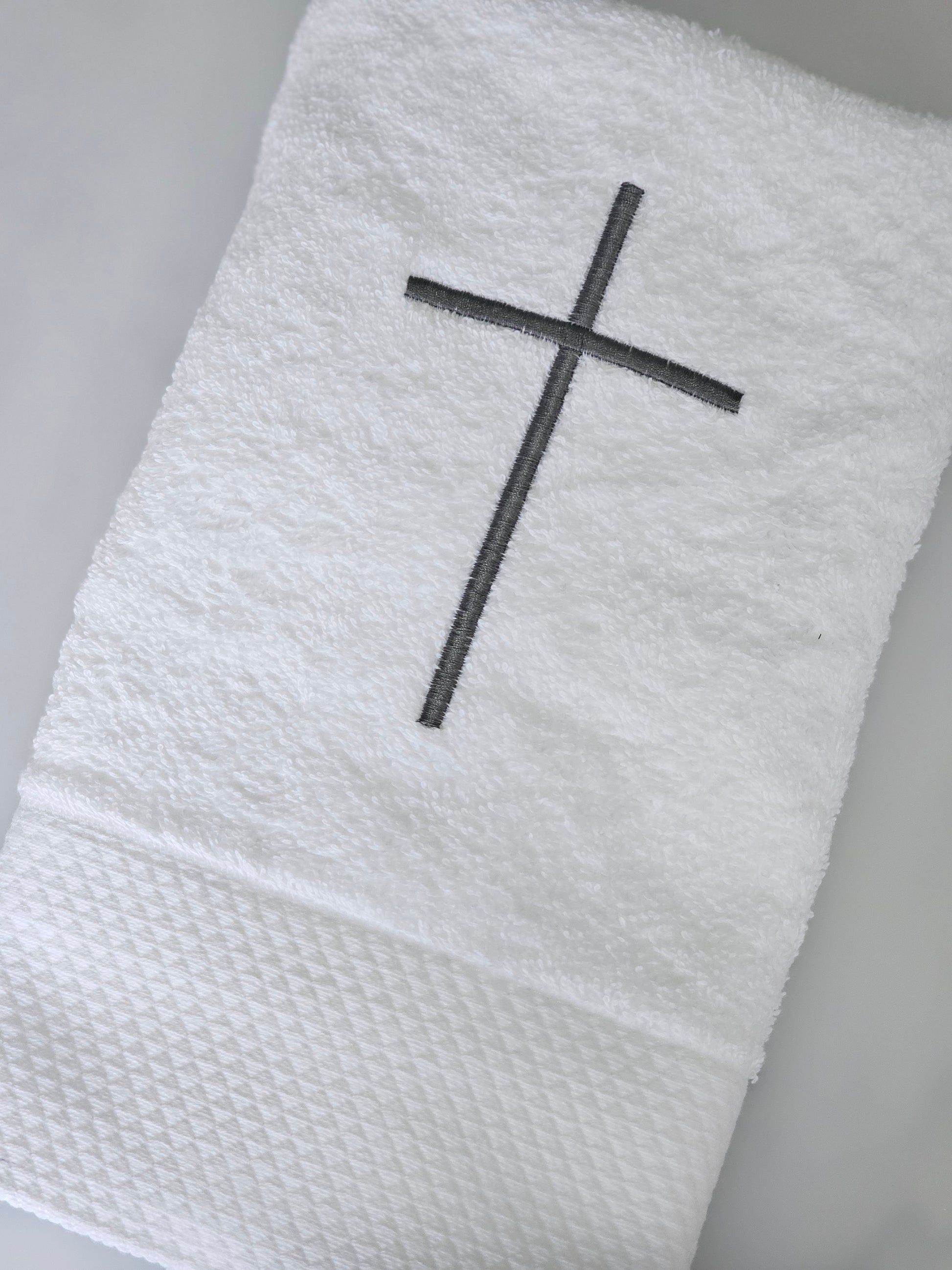 Our Hand Towels are another one of our best seller for Christenings and Baptisms. They are embroidered with a full name, date and a cross (or to match standard towel - can be purchased as a set on packages). Please note in personalised message box if you wish to change anything.